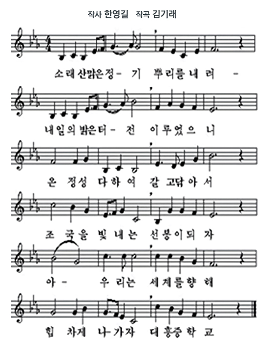 - 청색 : '미래를 향한 푸른 꿈을 상징' 하며 발전적이고 긍정적인 인간상을 지향함
